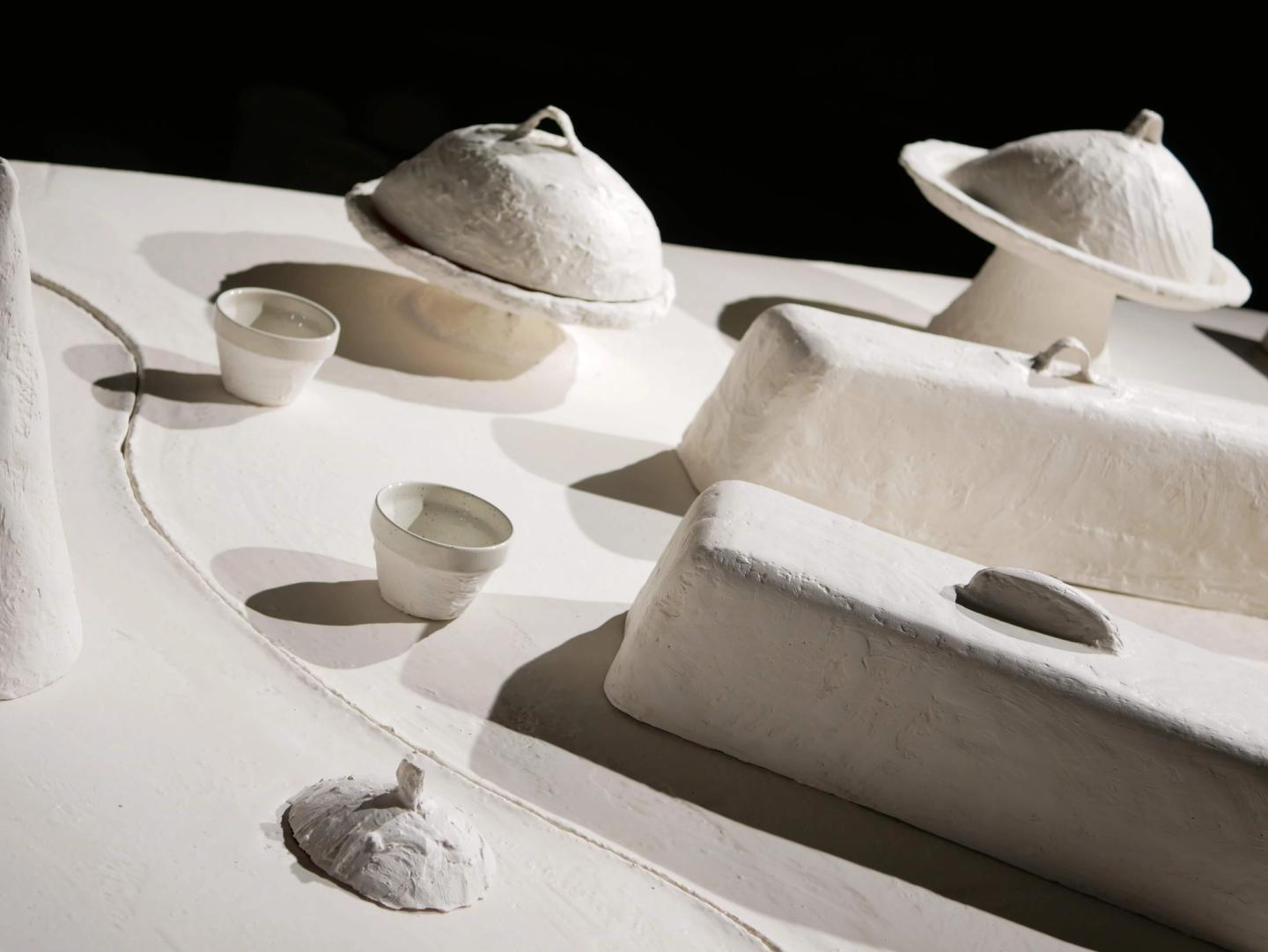 Balbosté imagined a bespoke dining setting centered around a custom-made immaculate white table, meticulously crafted by artisans to reflect Loewe’s dedication to precision and elegance. The table, a true technical achievement, concealed hidden surprises for guests, such as integrated speakers, compartments for spices, and condiments, elevating the experience with elements of discovery and interaction. The scenography combined minimalist aesthetics with intricate detailing, immersing guests in the brand’s world of refined craftsmanship.