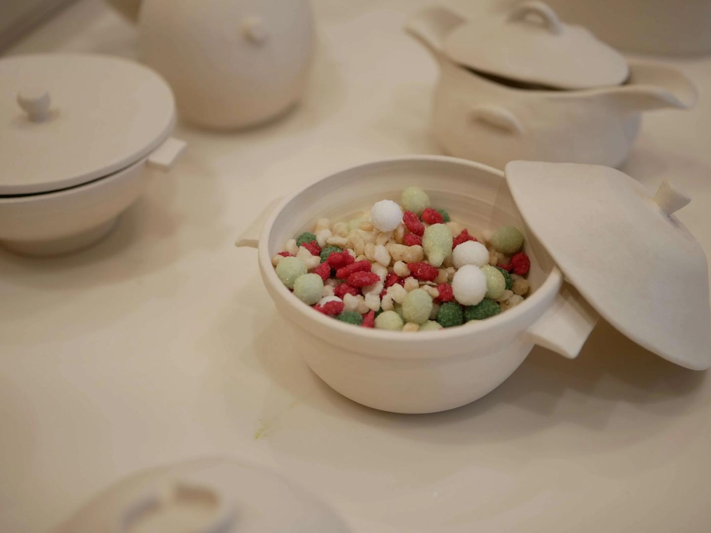 Balbosté imagined a bespoke dining setting centered around a custom-made immaculate white table, meticulously crafted by artisans to reflect Loewe’s dedication to precision and elegance. The table, a true technical achievement, concealed hidden surprises for guests, such as integrated speakers, compartments for spices, and condiments, elevating the experience with elements of discovery and interaction. The scenography combined minimalist aesthetics with intricate detailing, immersing guests in the brand’s world of refined craftsmanship.