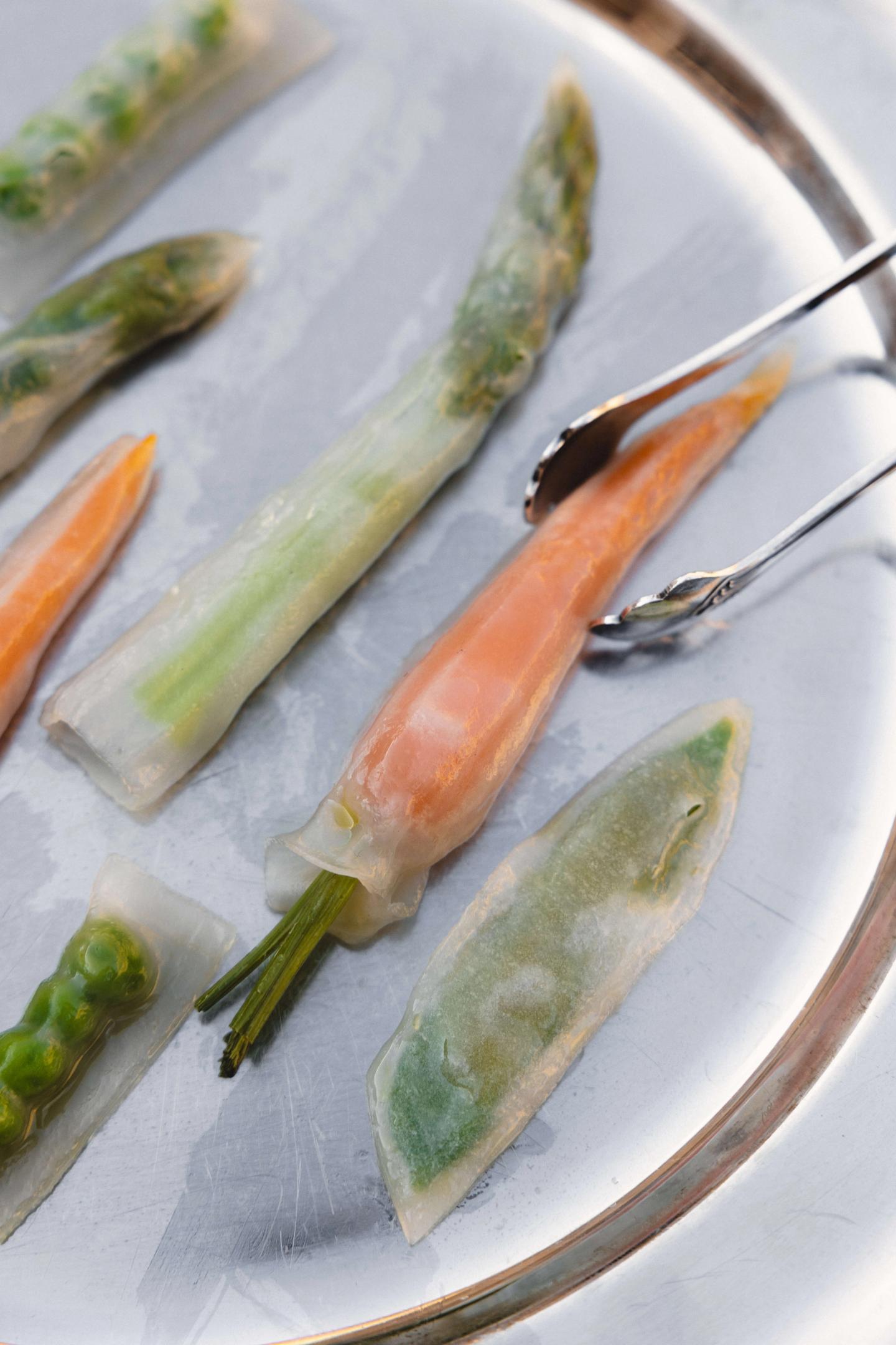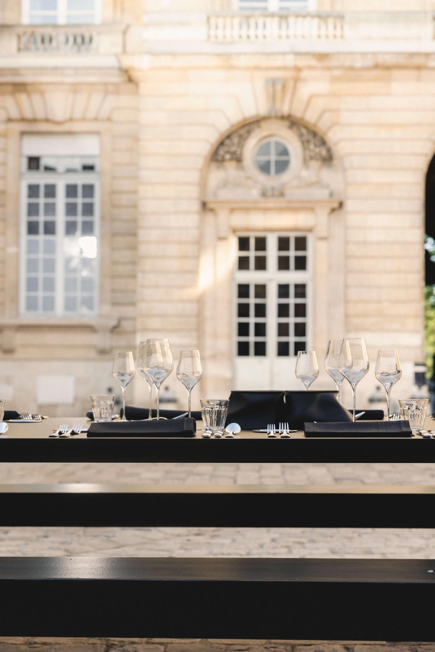 Balbosté imagined a minimalist setup within the grand setting of the Monnaie de Paris courtyard, creating a striking contrast between the refined simplicity of the table arrangement and the opulence of the surroundings. The scenography was elevated through the use of 3D-printed trivets, showcasing a fusion of modern craftsmanship and innovative design.