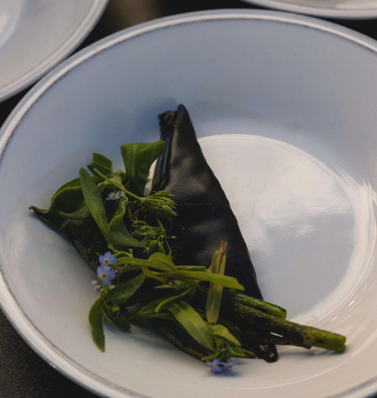 Balbosté created a dining experience inspired by the SS25 collection “Under My Skin” by Louis Gabriel Nouchi, featuring a shared 3-course menu designed in collaboration with guest chef Valentin Raffali. The dinner echoed the essence of the fashion show held at the Monnaie de Paris, offering guests a culinary interpretation of the collection’s themes and aesthetics.