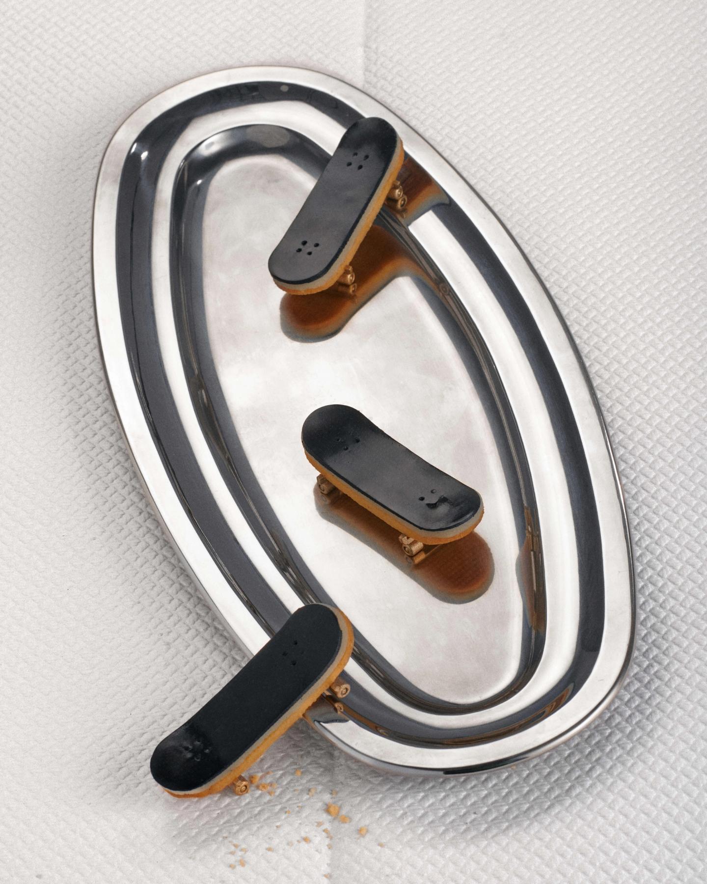 Balbosté imagined a series of custom-made serving trays, including a striking 3D-printed replica of Pont Neuf—an emblematic location of Pharrell’s first runway show—meticulously painted in gold to echo Louis Vuitton’s heritage. Another key element was the Damoflage checkerboard pattern, specially crafted to present delicate chocolate truffles, merging artistic direction with culinary excellence. Each detail was designed to create a seamless fusion between Pharrell's creative vision and the luxury codes of the house.