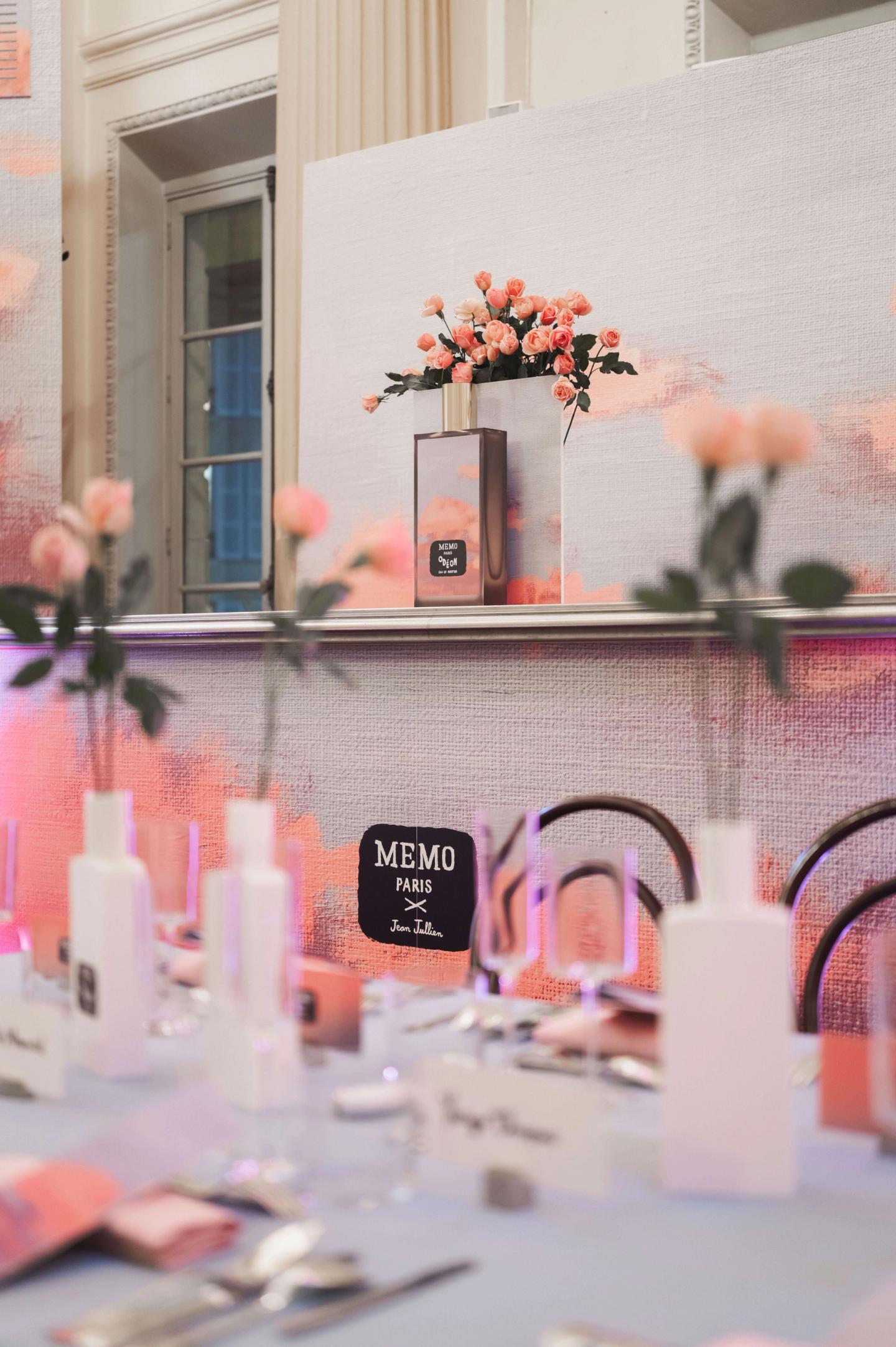 On the occasion of the launch of the new Memo Paris fragrance, created in collaboration with artist Jean Jullien, a bespoke dinner experience was imagined as a tribute to the delicate beauty of Parisian mornings — scented with warm croissants, bathed in soft light, and brushed with a rosy sky.